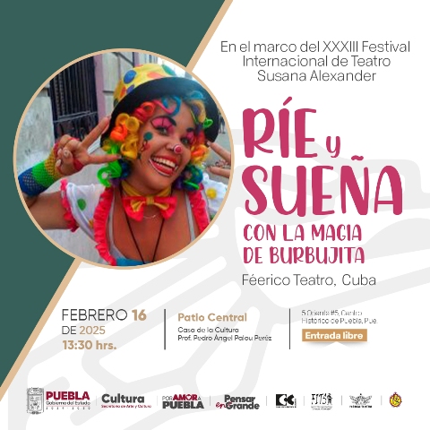 CIUDAD DE PUEBLA, Puebla.- ebrero 14 del 2025.-El gobierno estatal, encabezado por Alejandro Armenta, a través de la Secretaría de Arte y Cultura, invita al público a disfrutar de dos funciones teatrales gratuitas, como parte del XXXIII Festival Internacional de Teatro “Susana Alexander”, que se llevarán a cabo en la Casa de la Cultura “Profesor Pedro Ángel Palou Pérez”.