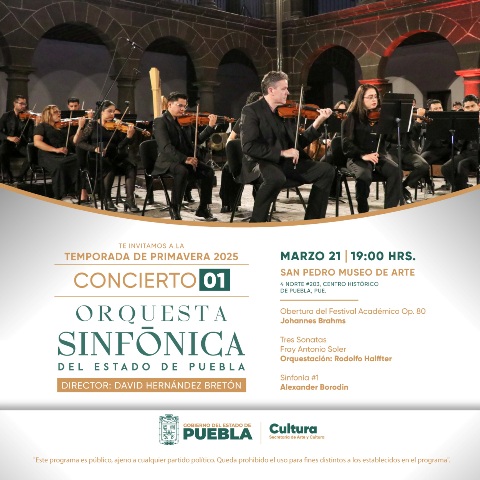 CIUDAD DE PUEBLA, Pue.- La Secretaría de Arte y Cultura invita al público en general a disfrutar de los conciertos de la Temporada de Primavera de la Orquesta Sinfónica del Estado de Puebla (OSEP), que se llevarán a cabo los viernes, del 21 de marzo al 20 de junio, con entrada libre.