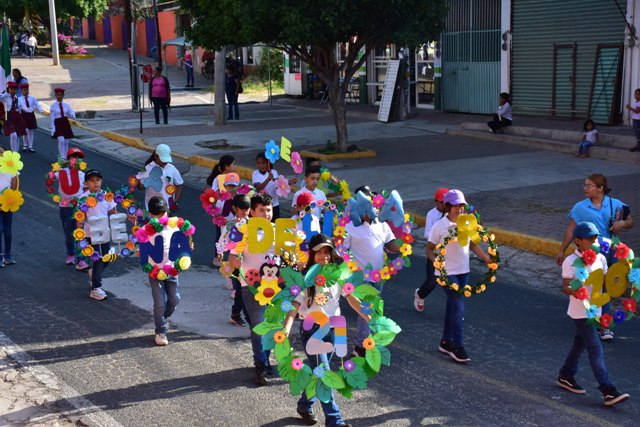 Las instituciones de todos los niveles educativos realizaron su presentación con vestuarios coloridos, alusivos a la primavera y a Benito Juárez, demostrando la creatividad en sus pancartas y vestuarios. Escoltas, contingentes de descubierta, bandas de guerra, contingentes de estudiantes uniformados, fueron parte de la presentación de todas las instituciones. Además, se realizó la presentación de la reina de la primavera y sus princesas, de la Ludoteca ELUCOM y del Jardín de Niños “Gral. Gabino Lozano Sánchez”.