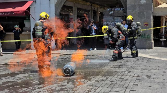 PUEBLA.-Abril 29 del 2025.-Haciendo alusión a un conato de incendio de un cilindro de gas…