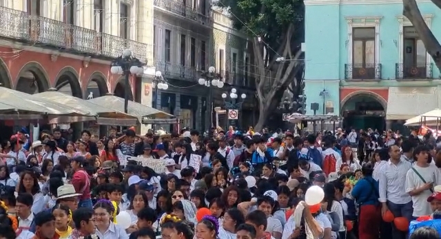 Marcha estudiantil provoca cierres viales en el Centro Histórico de Puebla