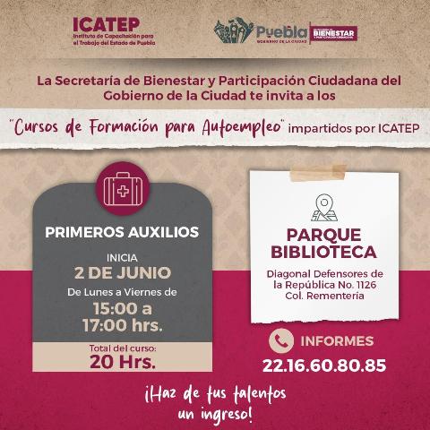 PUEBLA.-Mayo 30 del 2025.-El Gobierno de la Ciudad, encabezado por el alcalde Pepe Chedraui Budib, a través de la Secretaría de Bienestar y Participación Ciudadana, invita a la ciudadanía a inscribirse en los cursos gratuitos de capacitación que se imparten en coordinación con el Instituto de Capacitación para el Trabajo del Estado de Puebla (ICATEP). Esta iniciativa forma parte de una estrategia integral para fortalecer el tejido social, impulsar el desarrollo comunitario y apoyar la economía familiar.