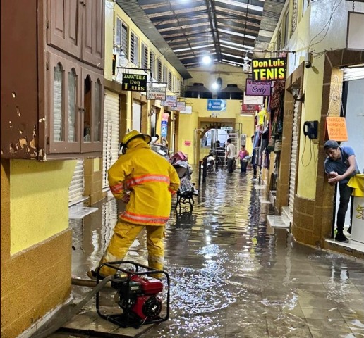 Uno de los puntos más afectados fue la plaza Corregidora, ubicada junto a las obras del nuevo mercado municipal. En esa zona, la acumulación de material pétreo generó un bloqueo en las alcantarillas, impidiendo el desfogue del agua pluvial. Como resultado, varios locales resultaron inundados.