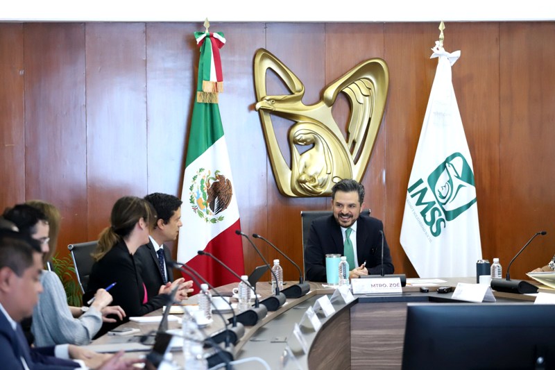 Durante una reunión con integrantes del BID, en la Sala de Usos Múltiples, el director general del IMSS, Zoé Robledo, reafirmó su compromiso con el fortalecimiento de políticas públicas clave en materia de salud a través de la consolidación de acciones como el impulso a la lactancia materna, desarrollo de estrategias para apoyar a las mujeres en su inclusión laboral y reducción del consumo de bebidas azucaradas.