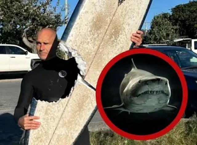 El surfista Brad Ross vivió un momento estremecedor el lunes 18 de agosto de 2025, cuando un gran tiburón blanco mordió con furia su tabla de surf en la playa de Cabarita, en Nueva Gales del Sur, Australia, separándola en dos justo debajo de él.