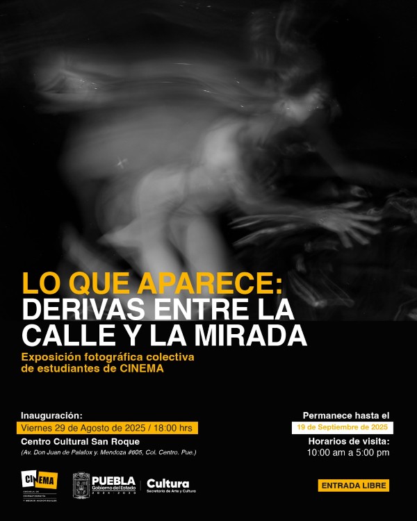 PUEBLA.-Agosto 28 del 2025.-“Lo que aparece. Derivas entre la calle y la mirada” es la  exposición reúne obras de dos grupos de estudiantes universitarios: un taller de fotografía callejera y otro de ensayo fotográfico. Albergada en uno de los espacios arquitectónicos más emblemáticos en Puebla y cuya restauración en el 2023 fue indispensable para preservarlo.