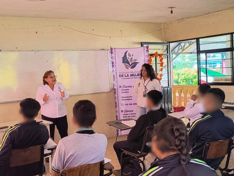 HUAUCHINANGO.-Octubre 3 del 2025.-A través del Instituto Municipal de la Mujer e Igualdad de Género, se impartió la conferencia de “Nuevas Masculinidades” a los alumnos del Telebachillerato Comunitario No. 78, con el objetivo de fomentar la reflexión entre los jóvenes sobre generar empatía y la igualdad.