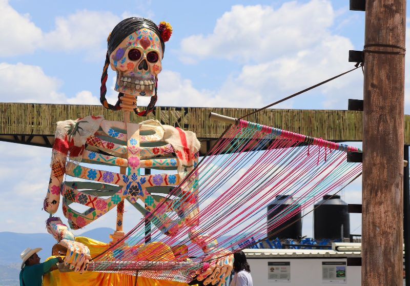 Cada catrina cuenta una historia, desde la Catrina Obrera, que recuerda el legado femenino en la industria textil, hasta el Catrín Panadero, tributo al pan artesanal que aún nutre hogares y memoria. También destacan figuras como la Catrina Tejedora, la Tortillera y el Bolero, oficios tradicionales representados por artistas locales y jóvenes creadores que plasman el alma de un pueblo en cartonería, pintura y escultura monumental.