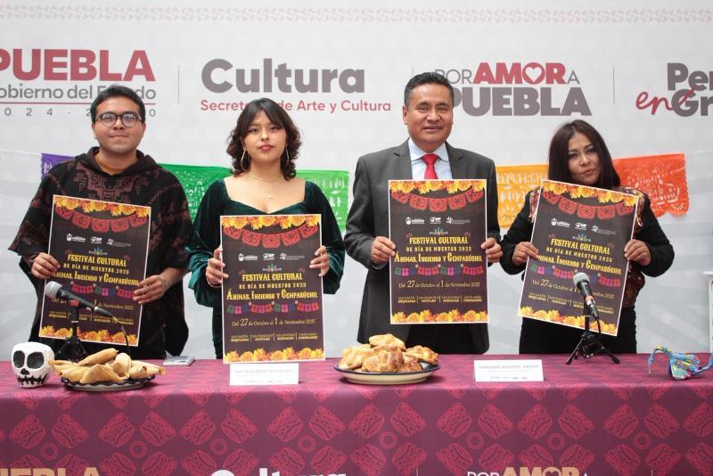 CIUDAD DE PUEBLA, Pue.-Octubre 22 del 2025.- La Secretaría de Arte y Cultura del gobierno encabezado por Alejandro Armenta, y el Ayuntamiento de Coronango presentó la primera edición del Festival “Ánimas, incienso y cempasúchil”, el cual se desarrollará del 27 de octubre al 1 de noviembre en las juntas auxiliares de Santa María Coronango, San Martín Zoquiapan, San Francisco Ocotlán y San Antonio Mihuacán, pertenecientes al municipio.