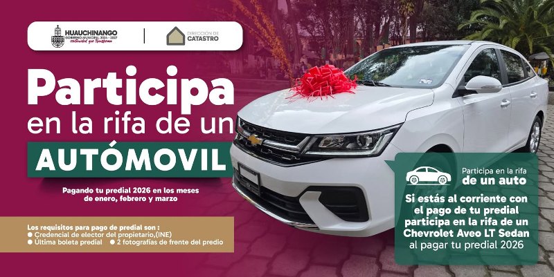 ¡Aprovecha los descuentos en el pago de Impuesto Predial y participa en la Rifa de un #Automóvil 2026!