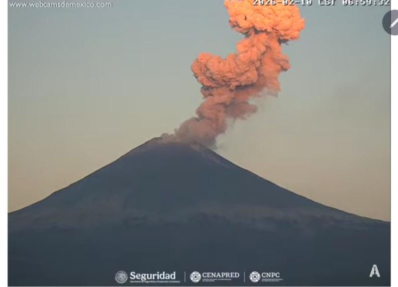 CIUDAD DE PUEBLA, Pue.-Febrero 10 del 2026.- El día de hoy a las 06:56 horas se presentó una exhalación de ceniza, gas y vapor de agua con una altura de aproximadamente 1 kilómetro sobre el cráter, que se ha dispersado preferentemente hacia el noreste, sobre las regiones de Tianguismanalco y San Nicolás de los Ranchos.