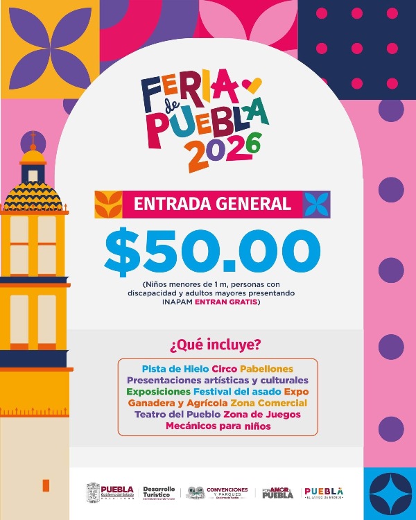 PUEBLA.- Abril 18 del 2026.- La Feria de Puebla 2026 ya está lista para recibir a miles de visitantes con una propuesta amplia de entretenimiento, cultura y tradición, manteniendo una entrada general accesible de 50 pesos.